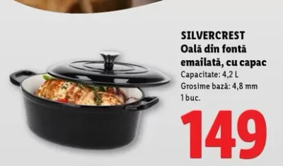 Oală din fontă emailată, cu capac — Capacitate: 4,2 L Grosime bază: 4,8 mm 1 buc.
