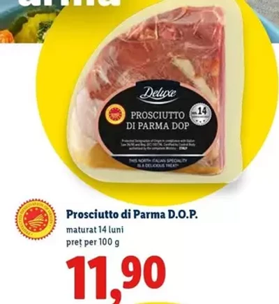 PROSCIUTTO DI PARMA DOP — maturat 14 luni pret per 100 g